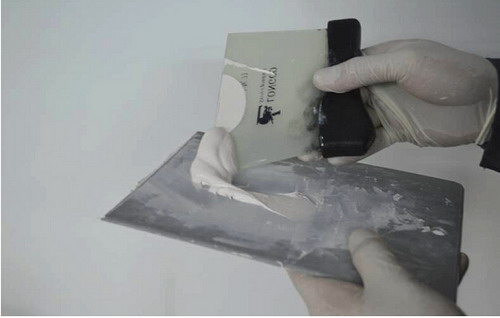 按比例添加固化劑后按照以下步驟進(jìn)行調(diào)和原子灰: