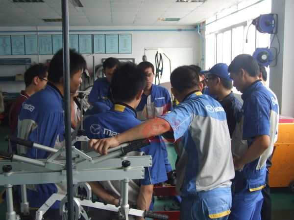 全國一汽馬自達各服務店都配備具有國際領先的鈑金維修工具設備,為了最大限度地利用這些高效率的工具設備,提升鈑金作業人員的技能及素養,并為馬自達系統的售后服務體系打造一支鈑金維修技術過硬的隊伍。經過一汽馬自達集團服務部統籌與組織,來自全國各地一汽馬自達服務店D0910班的第十期培訓學員,于2009年10月14日到珠海接受鈑金技術提升培訓。