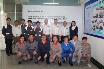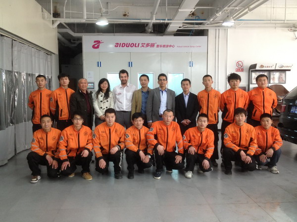 2013年特邀國外專家赴北京車爵士演示車縫泡膠條的使用 2013-04-08 12071 本司訊:2013年4月北京晴空萬里,龍神公司特邀英國專家一行五人,來到了北京車爵士進行汽車噴涂遮蔽技術交流。首先公司一行了解車爵士的汽車噴涂情況及詢問了使用的遮蔽工具情況。隨后英國專家針對在汽車噴漆時難噴涂的車門縫隙、玻璃死角等地方的專業遮蔽工具的演示。車縫泡沫膠:用于車身所有縫隙的遮蔽,有效隔離及遮蔽漆霧噴入車縫里。