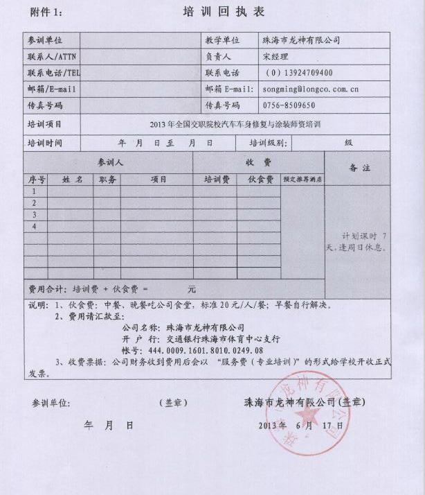 2、報(bào)名回執(zhí)表需在培訓(xùn)開始前5日,回傳至我司。