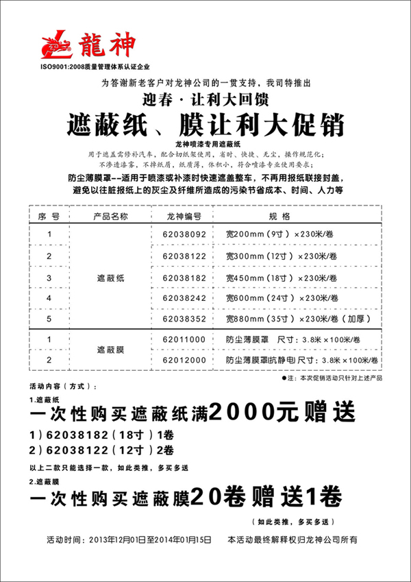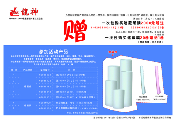 一次性買滿遮蔽膜20卷贈(zèng)送1卷。如此類推,多買多送。