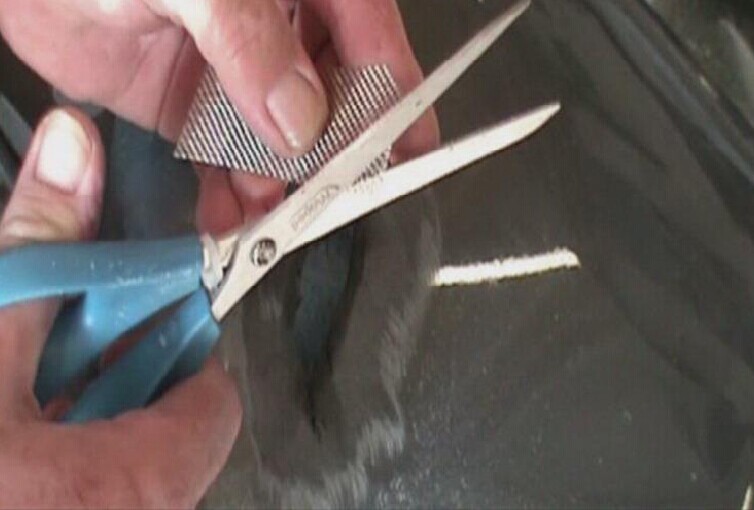 步驟5:用剪刀壓住無銹加固網,然后用專用烙鐵從加固網的邊緣開始進行熔植,如圖1-5所示。