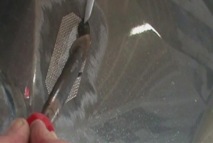 步驟7:對熔植的無銹加固網周圍進行簡單的打磨,以增強其表面的附著力,便于后續進行玻纖膠條覆蓋的操作,如圖1-7所示。