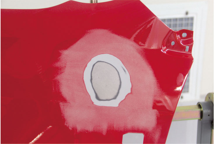 1. 首先用除油劑對需要修補的中涂層進行整體除油,待干燥后用粘塵布整體除塵。