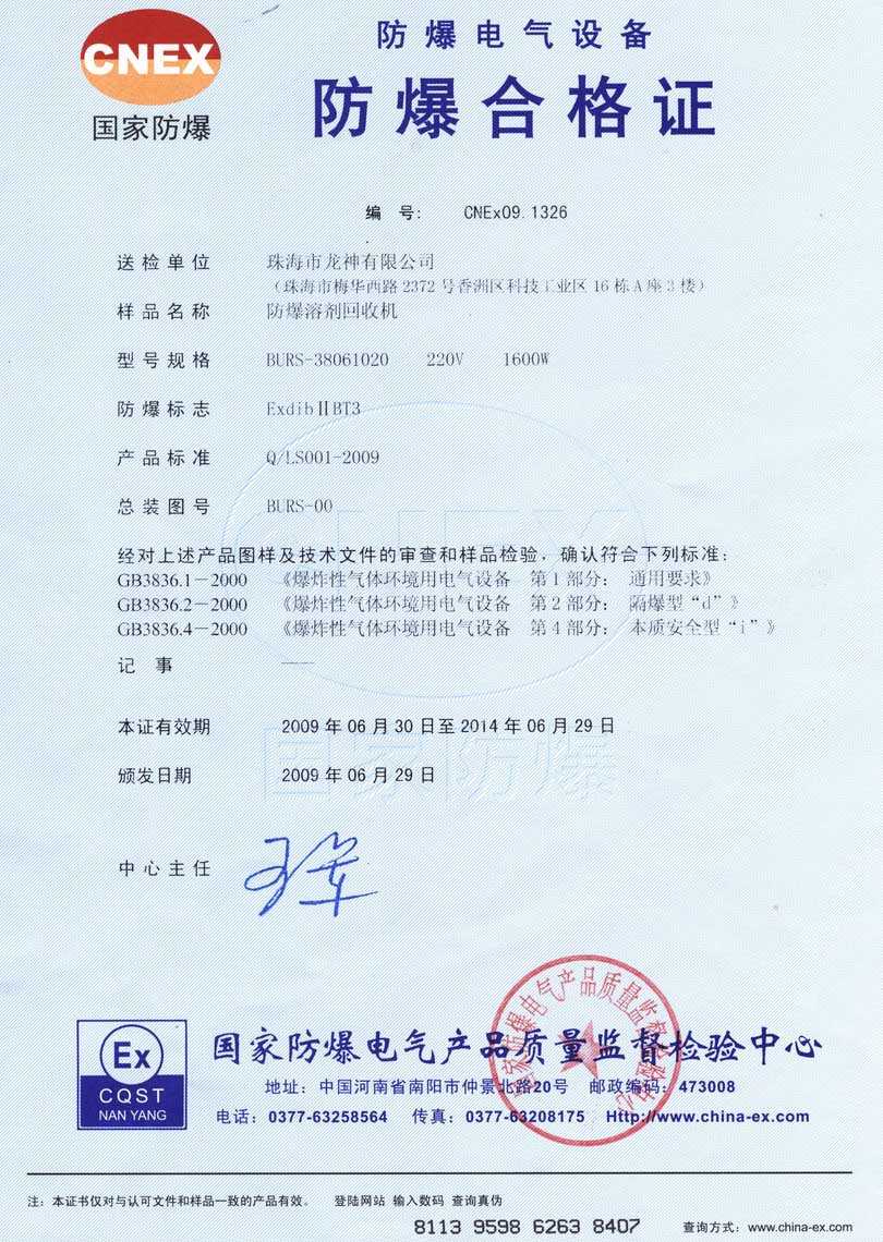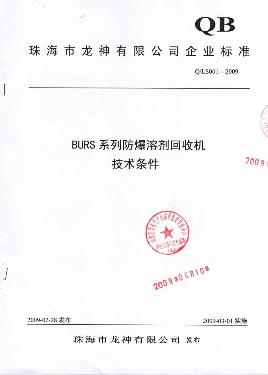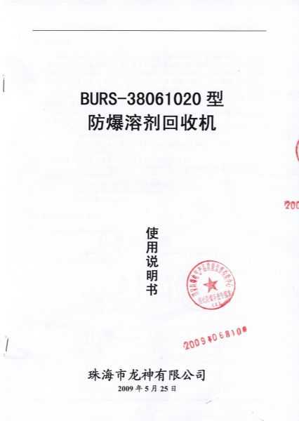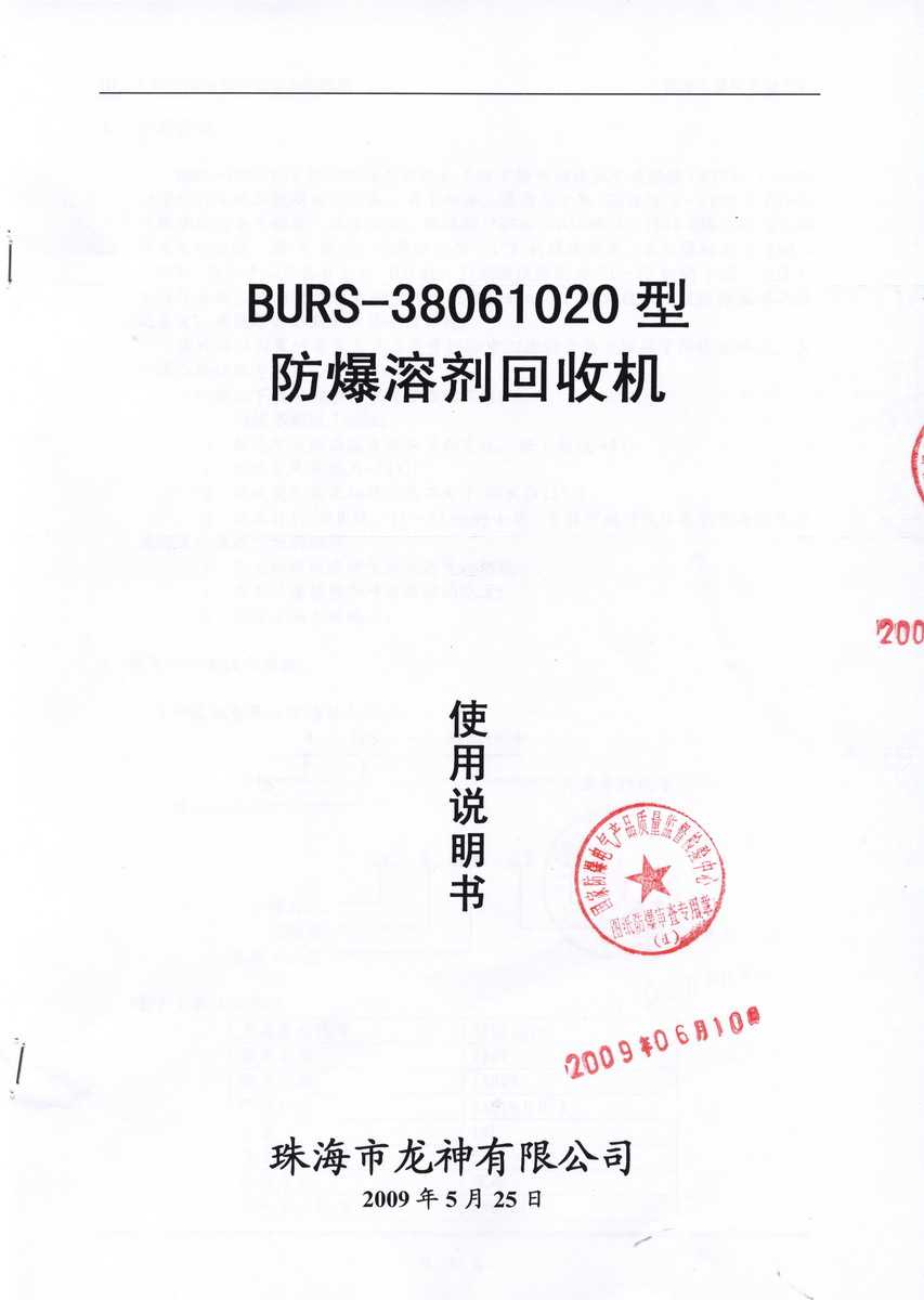 防爆認證 防爆溶劑回收機防爆合格證 BURS系列防爆溶劑回收機技術條件 BURS-38061020型防爆溶劑回收機 使用說明書 BURS-38061020型防爆溶劑回收機 圖紙資料 (以上圖片均可點擊放大) 2012-11-27 34563
