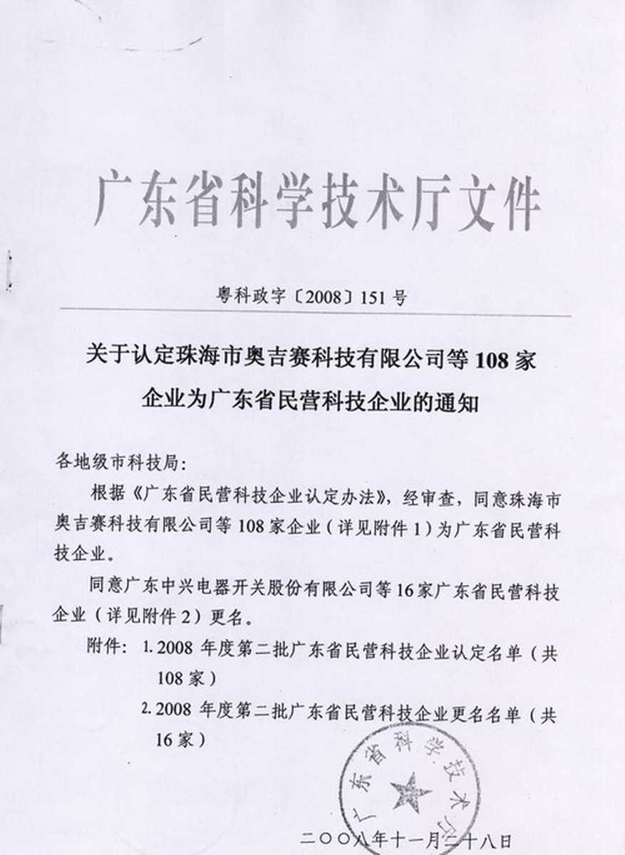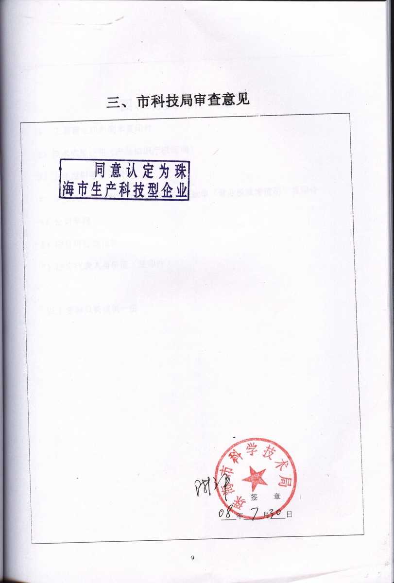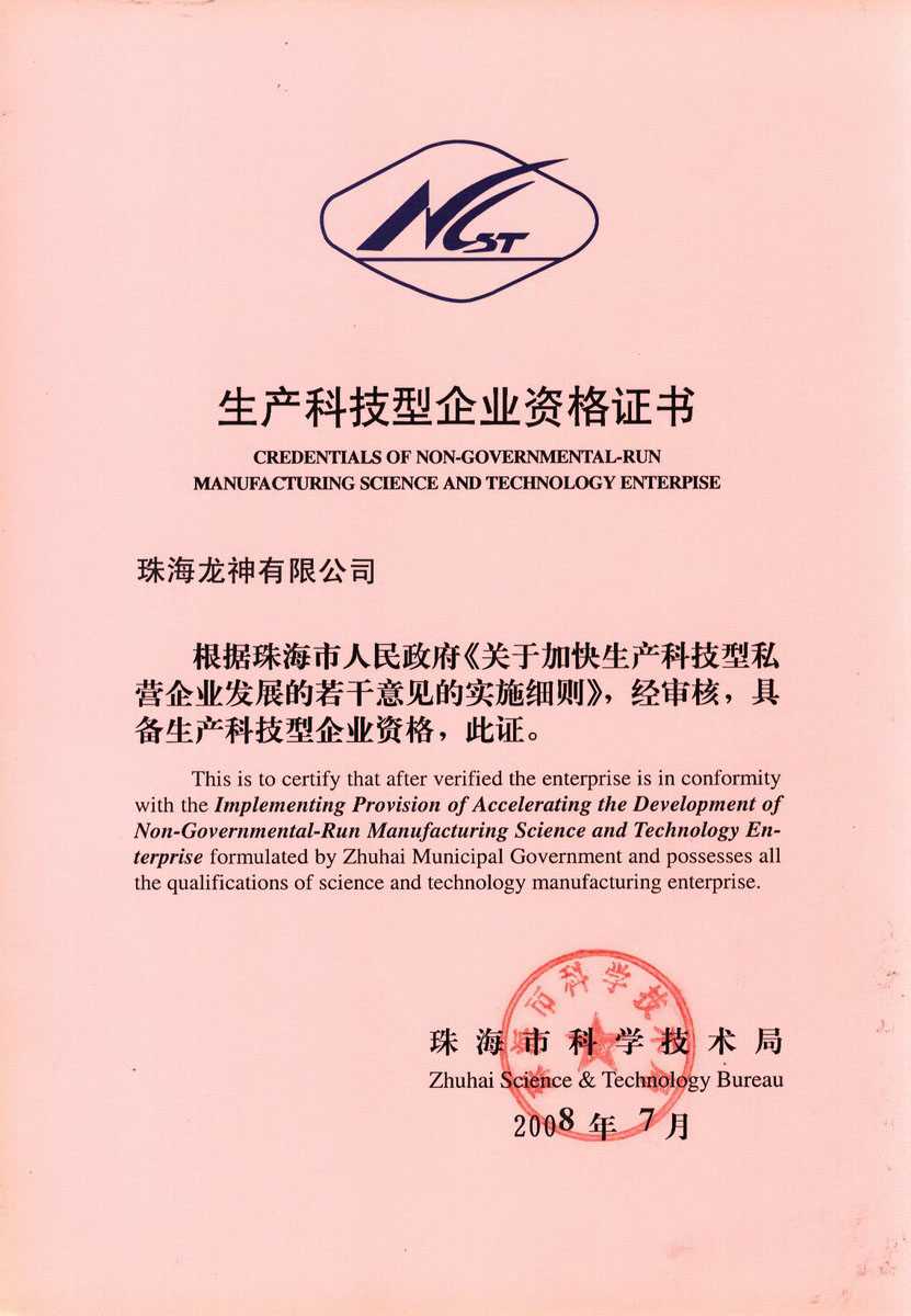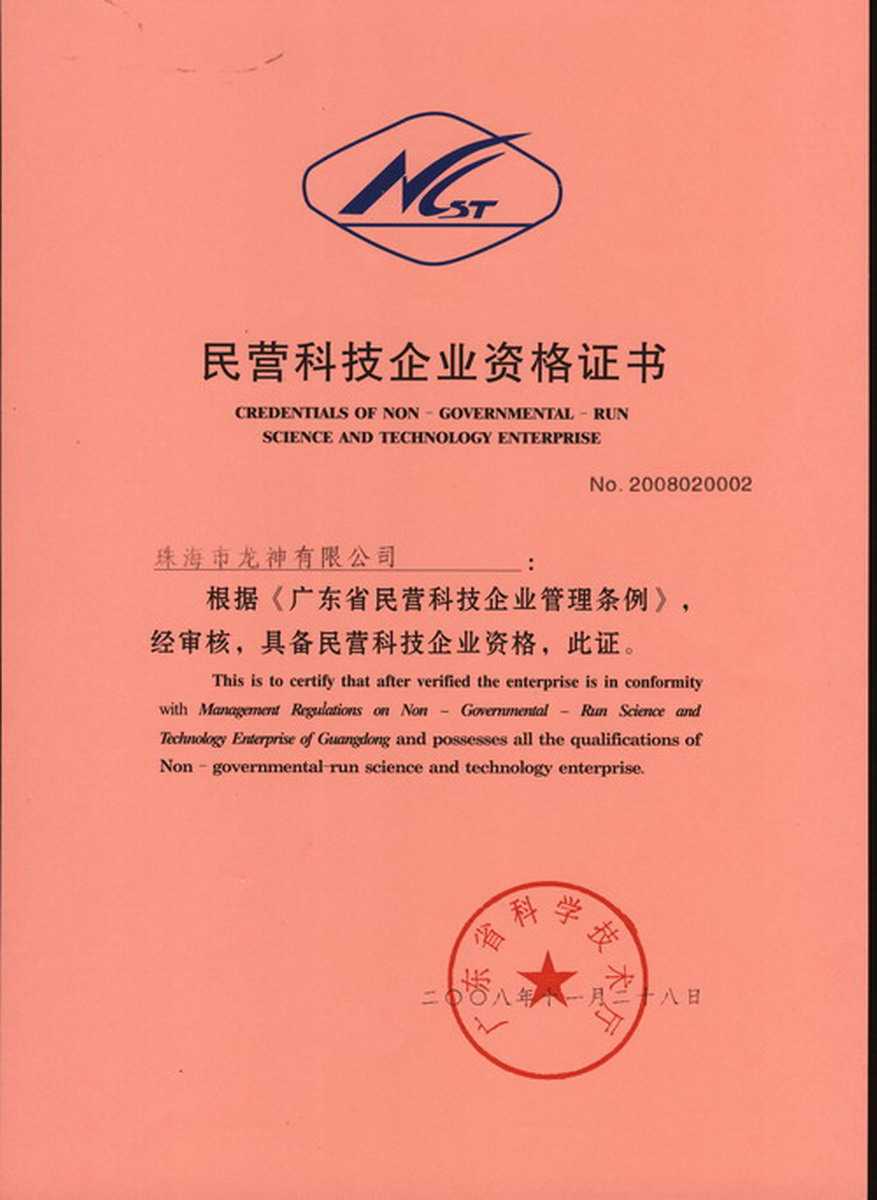 資格證書 一、ISO9001:2008質量管理體系認證ISO9001:2008質量管理體系認證證書 二、廣東省民營科技企業資格證書民營科技企業資格證書 廣東省民營科技企業 三、珠海市生產科技企業證書生產科技型企業 珠海市生產科技型企業 認定證書 生產科技型企業資格證書(以上圖片均可點擊放大) 2012-11-27 37045