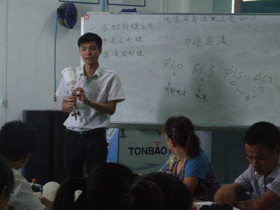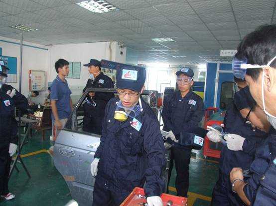 全國(guó)交職院校鈑噴師資高級(jí)培訓(xùn)班實(shí)況 炎炎的八月三伏天,為期7天的全國(guó)交職院校鈑噴師資高級(jí)培訓(xùn)也隨之火熱開班。此次高級(jí)班除了有以往鈑金加噴漆知識(shí)的組合課程外,還特意邀請(qǐng)來自上海交通職業(yè)技術(shù)學(xué)院,且有三十多年專業(yè)教學(xué)經(jīng)驗(yàn)的資深汽車技術(shù)和營(yíng)銷培訓(xùn)師印鎮(zhèn)元教師,為主講事故車定損、舊機(jī)動(dòng)手車評(píng)估等更深入的知識(shí)傳授。直接與專業(yè)老師面對(duì)面心得交流,培訓(xùn)的氛圍再次火熱。