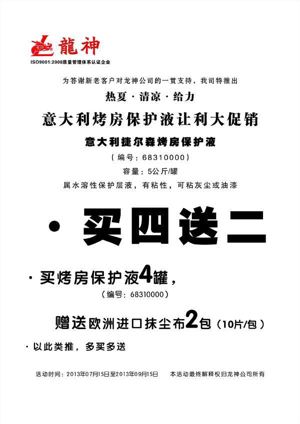“熱夏。清涼。給力”意大利烤房保護液讓利大促銷。