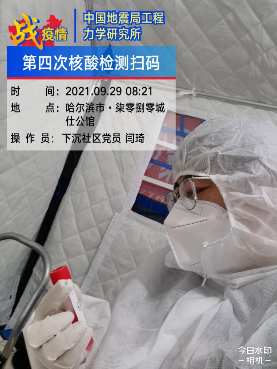 2021年9月21日中秋佳節,突如其來的新冠疫情打破了哈爾濱歡樂祥和的節日氛圍。本輪疫情呈現多點散發態勢,防控形勢相當嚴峻復雜,接連18天里,哈爾濱開展了7輪核酸檢測。工力所黨委堅決貫徹落實中國地震局黨組指示批示和地方政府關于疫情防控決策部署,切實加強黨對疫情防控工作的全面領導,在做好本所疫情防控工作的同時,全力支援社區疫情防控,切實踐行“我為群眾辦實事”的宗旨服務意識。