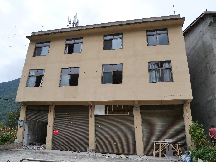 石棉線科考組(戴君武、周寶峰、柏文)圍繞51SMX,SC-T2471,51SMM等強震臺站,開展周邊建筑震害調(diào)查。SC-T2471臺站在本次地震中記錄到的加速度記錄峰值最大,現(xiàn)場考察發(fā)現(xiàn)該臺站位于山包之上,地形對其地震響應(yīng)具有較為明顯的放大作用。此外,地基失效是造成房屋破壞的重要原因,由于山地地形限制,部分民房建于山坡上,地震時結(jié)構(gòu)基礎(chǔ)土體沿山坡向下發(fā)生滑動,造成基礎(chǔ)局部失效,進而引起上部結(jié)構(gòu)破壞。