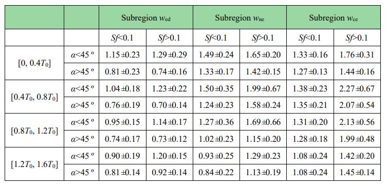 表1 各子區(qū)域內不同周期放大系數(shù)
