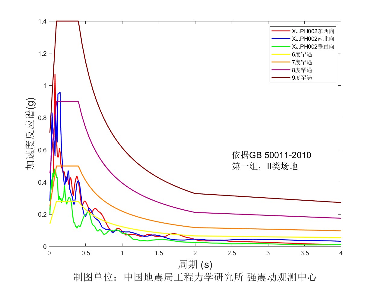 圖7 XJ.PH002臺加速度反應(yīng)譜圖