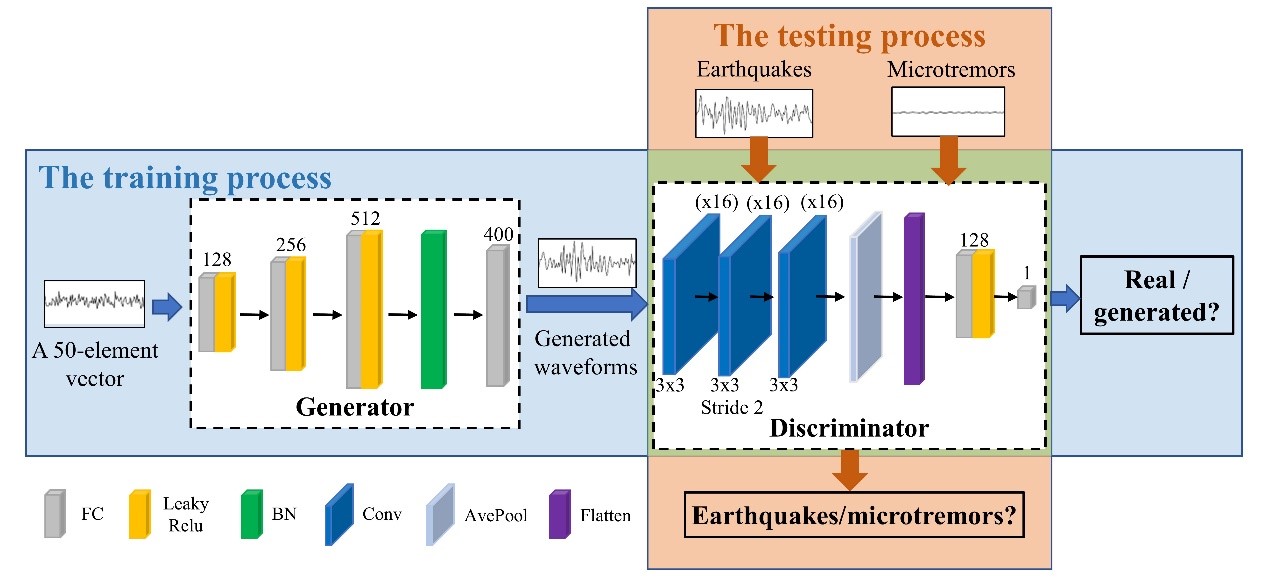 地震事件識別是地震監測業務的基礎性工作,特別是隨著大規模地震臺站建設、海量地震數據匯聚以及地震預警的發展,從連續波形記錄中自動識別出地震信號顯得更加重要。然而,地脈動的存在可能會造成P波自動撿拾算法的誤觸發,這對地震事件識別工作提出了相當大的挑戰。而且不同地區的地震常常呈現出獨特的地震特征,所以目前的地震識別工作主要是依賴于人工完成。因此在海量地震數據時代,開發高效、高精度、通用的地震自動檢測算法顯得尤為重要。本文采用生成對抗網絡方法,將傳統的地震事件識別問題轉化為一個將地震事件與地脈動噪聲的分類問題,旨在探索機器學習算法在地震監測中的可行性。
