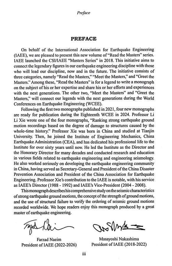 會上,謝禮立院士以《強地震動按破壞強度的排序研究(Ranking strong earthquake ground motion recordings based on the degree of damage to structures caused by the whole time history)》為題做大會報告。IAEE前主席中島正愛教授親自主持。IAEE專門出資為謝禮立的此項研究成果以“閱讀大師”專著正式出版,贈送給來自全球100多個國家和地區(qū)的四千多名與會學者。這本專著凝聚了謝禮立院士及其團隊自本世紀初以來歷經(jīng)20余年的研究獲得的重要研究成果。