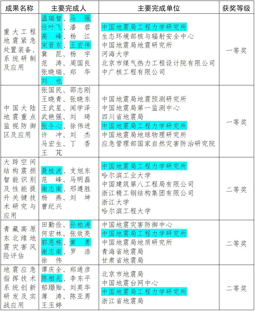 發布時間: 2025-07-17 點擊數量:9440近日,中國地震局公布了2025年度防震減災科研成果獎評選結果,我所作為牽頭單位完成的成果獲一等獎1項、二等獎1項,作為參與單位獲一等獎1項、二等獎2項。